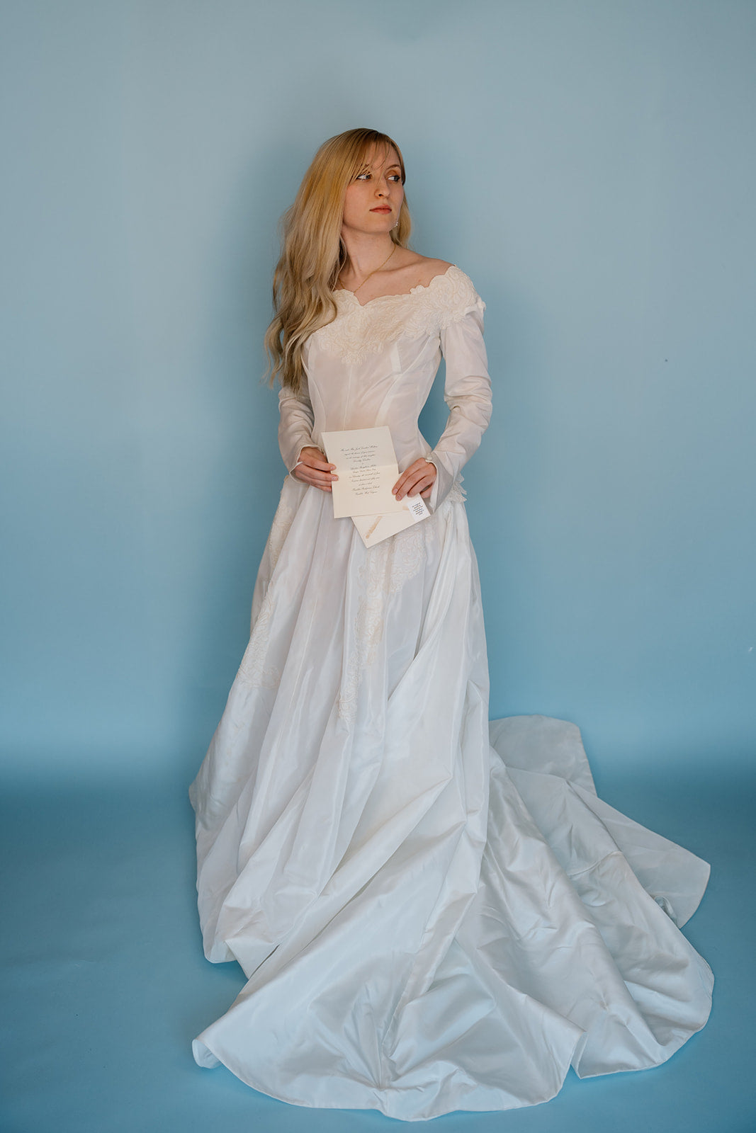 Dorothy: 1959 long sleeve ballgown with simple appliques